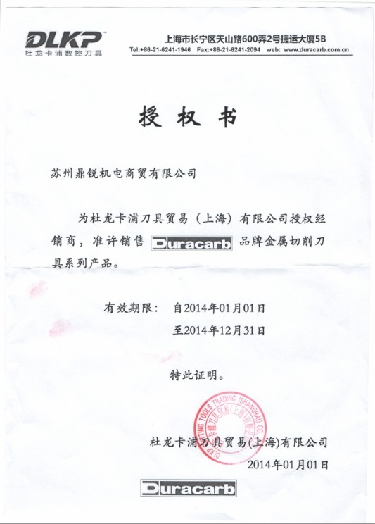 2014年起代理韓國(guó)杜龍卡浦 Duracarb 刀具系列 |