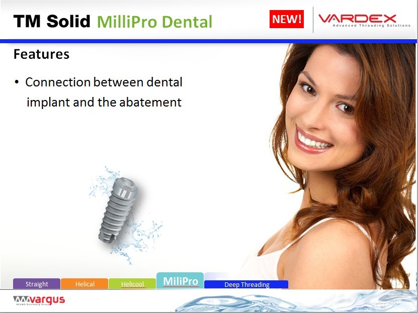 在醫(yī)療骨科行業(yè) 我們提供豐富的鋼板加工螺紋銑刀。為錐度10度 20度 牙距0.35 0.4 0.45 0.5 0.6等不同規(guī)格 特殊非標(biāo)定做服務(wù)。牙齒移植用螺紋銑刀,在醫(yī)療行業(yè)有這成功的案例。